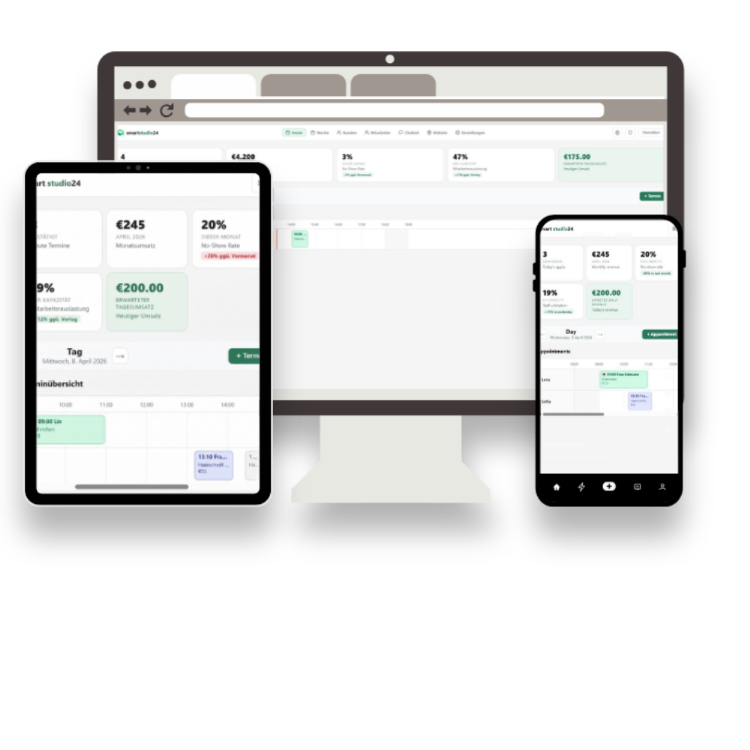 Jeden Morgen kurz aufs Handy — und du siehst: Wer kommt heute? Wie läuft der Monat? Welche Slots sind noch frei? Alles auf einen Blick.
