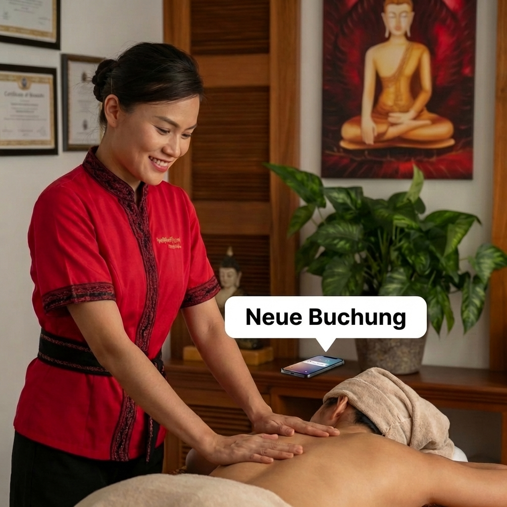Dein Studio nimmt Buchungen an – auch wenn du gerade behandelst, Feierabend hast oder deinen freien Tag genießt. Über die Website oder den KI-Assistenten, rund um die Uhr.